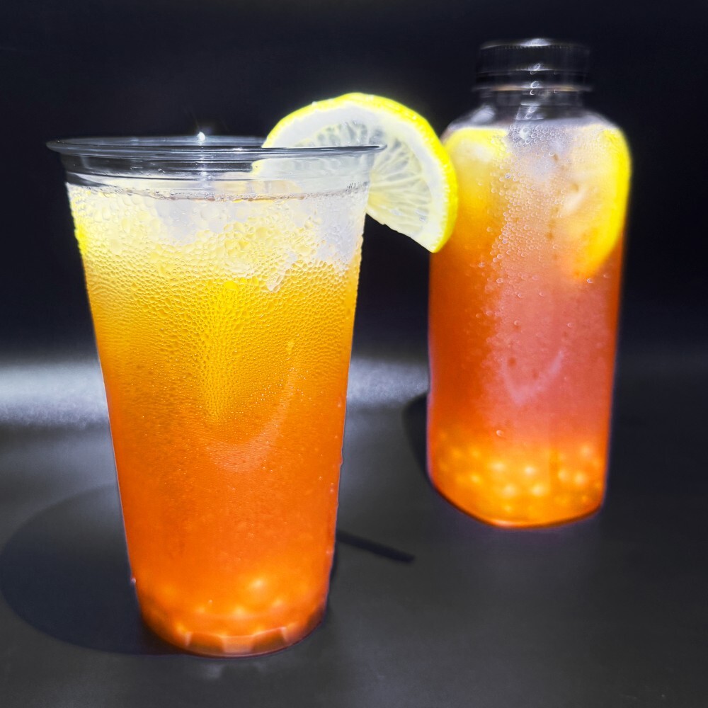 Джус-боллы манго, зеленый травяной чай сенча, пюре манго-маракуя, лед пищевой обогащенный, долька лимона.