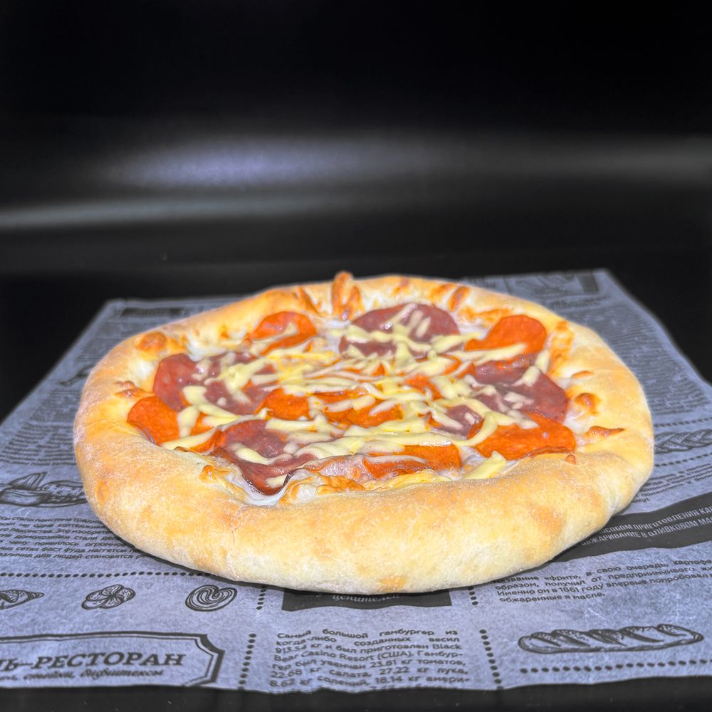 Оригинальная пицца диаметром на выбор в состав которой входит: Фирменное итальянское тесто, соус мутти, сыры моцарелла и гауда, натуральные пепперони, салями, насыщенный орегано подчеркивает вкус и армат блюда.