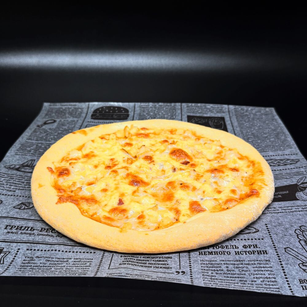 Оригинальная пицца диаметром на выбор в состав которой входит: Фирменное итальянское тесто, соус белый фирменный, сыры моцарелла и гауда, филе сочной курочки, кусочки ананасов, насыщенный орегано подчеркивает вкус и армат блюда.