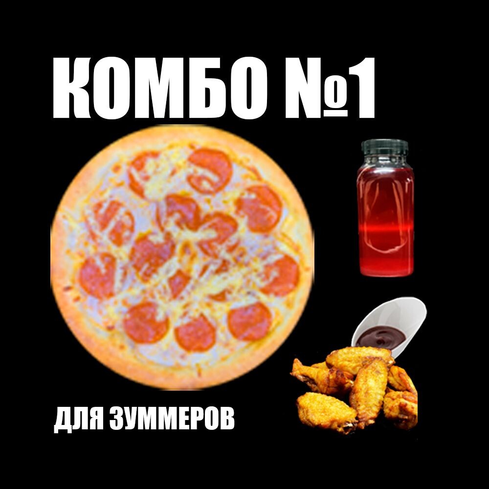 Зуммер комбо: состоящее из пиццы пепперони 23 см, морса клюквенного, соуса барбекю, крылышек фри.