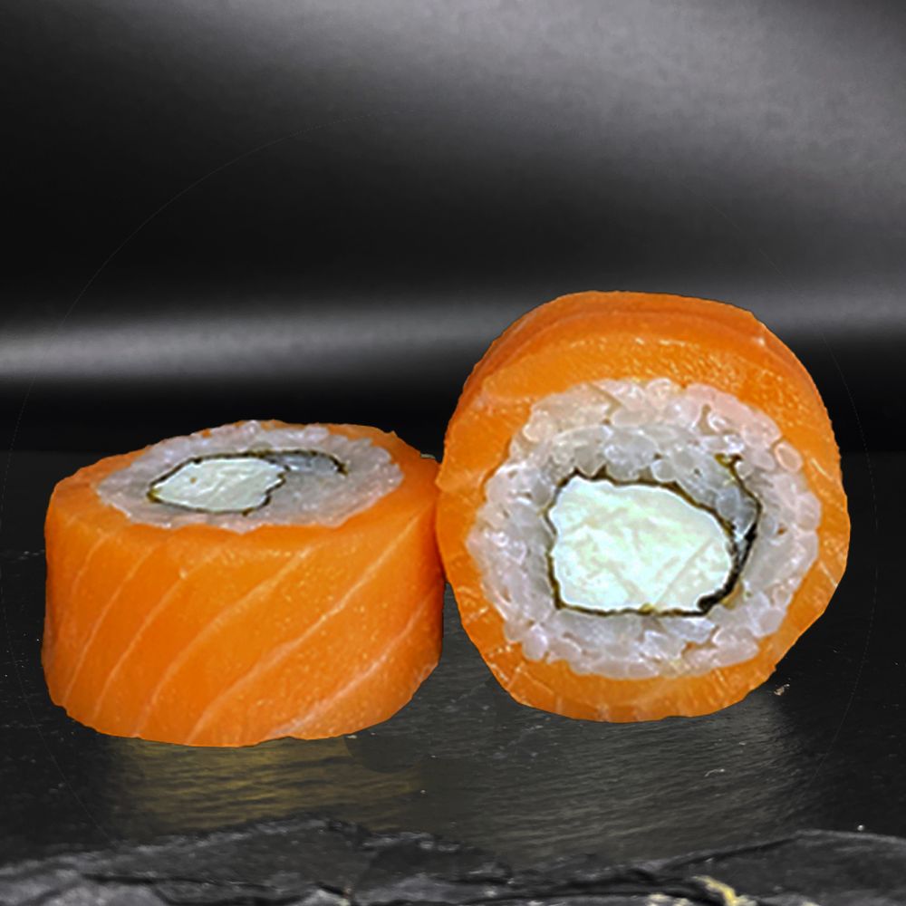 8 штучек фирменных круглых роллов в составе которых: оригинальные нори, 100% премиальный рис с добавлением натуральных соусов и приправ, натуральный сливочно-твороженный сыр, японский огурчик, филе тихоокеанского лосося (полный круг), микрозелень, подается с маринованным имбирем, натуральным васаби, соевым соусом.