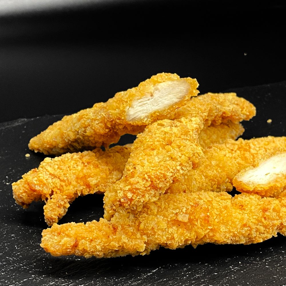 Сочное куриное филе в пшеничной панировке, обжареные до золотистой корочки, морская соль, приправы, специи.
