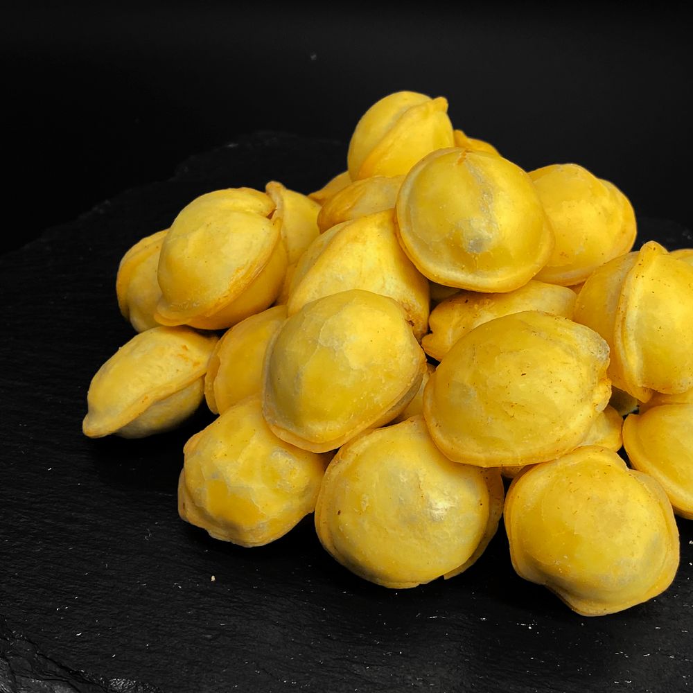 Пельмешки премиум качества жареные во фритюре, домашнее тесто, микс мяса курочки и говядины с приправами и специями.